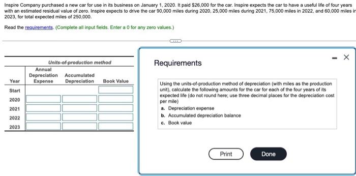 Solved Inspire Company Purchased A New Car For Use In Its Chegg Com